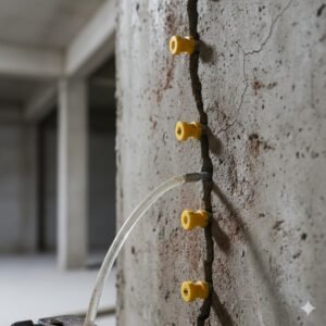Injection: The mixed epoxy is injected under pressure, starting from the lowest port, until the resin flows out of the adjacent port, confirming the crack is filled.