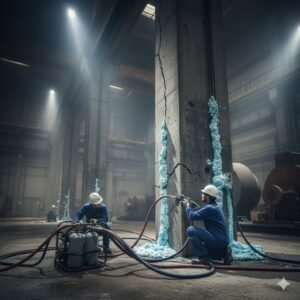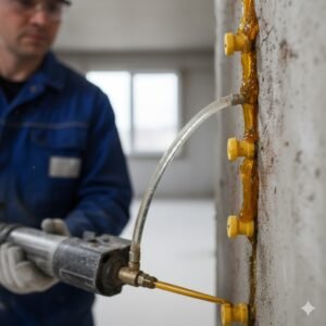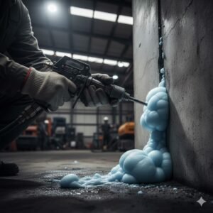 PU injection grouting is a highly effective method for sealing cracks and voids in concrete structures, stopping active water leaks. It involves injecting a polyurethane resin into the cracks under pressure. Upon contact with water, the resin reacts and expands, forming a flexible, watertight seal that fills the void and prevents further water penetration.